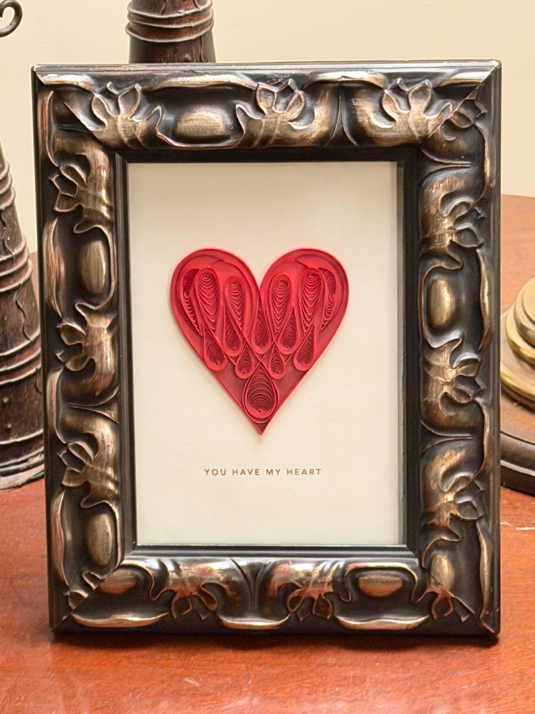So, our little pack navigates a sea change in the desert. For now, tails continue to wag, treats are anticipated, and “sniffaris” enjoyed, but Erich’s lovely quilled Valentine’s Day card carries a dual meaning, an ode to our precious girl.